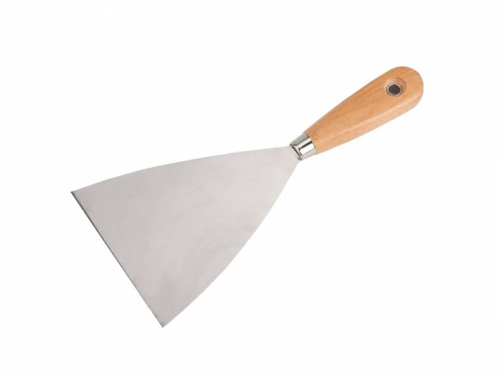 Špachtľa klin nerezová FESTA 100 mm s drevenou rúčkou. Je používana v štukatérstve, maliarstve, natieračstve, opravách karosérií alebo pri umeleckej tvorbe a pod. Je vhodná pre roztieranie sadry alebo iných tmeliacich hmôt či k odstraňovaniu starej maľby a náterov.