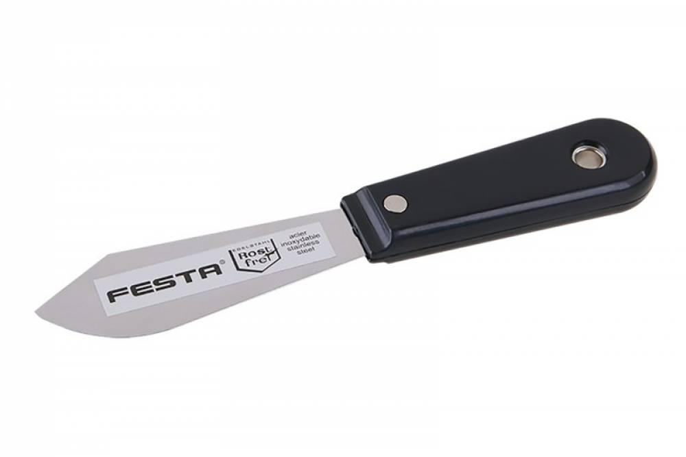 Tapetársky nôž FESTA 150 mm s plastovou rúčkou a nerezovou čepeľou. Je užívaný v maliarstve a tapetárstve.