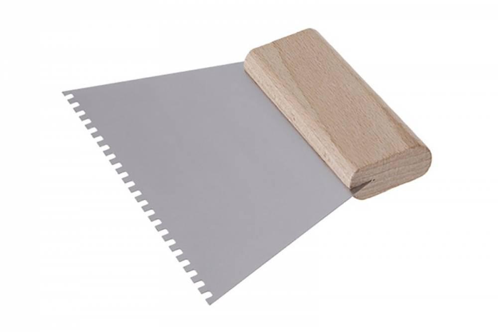 Stierka oceľová 180 mm zub e4 s drevenou rukoväťou. Stierka pre maliarske, murárske a podlahárske práce. Slúži na aplikáciu samonivelačných hmôt, lepidiel, malty atď.