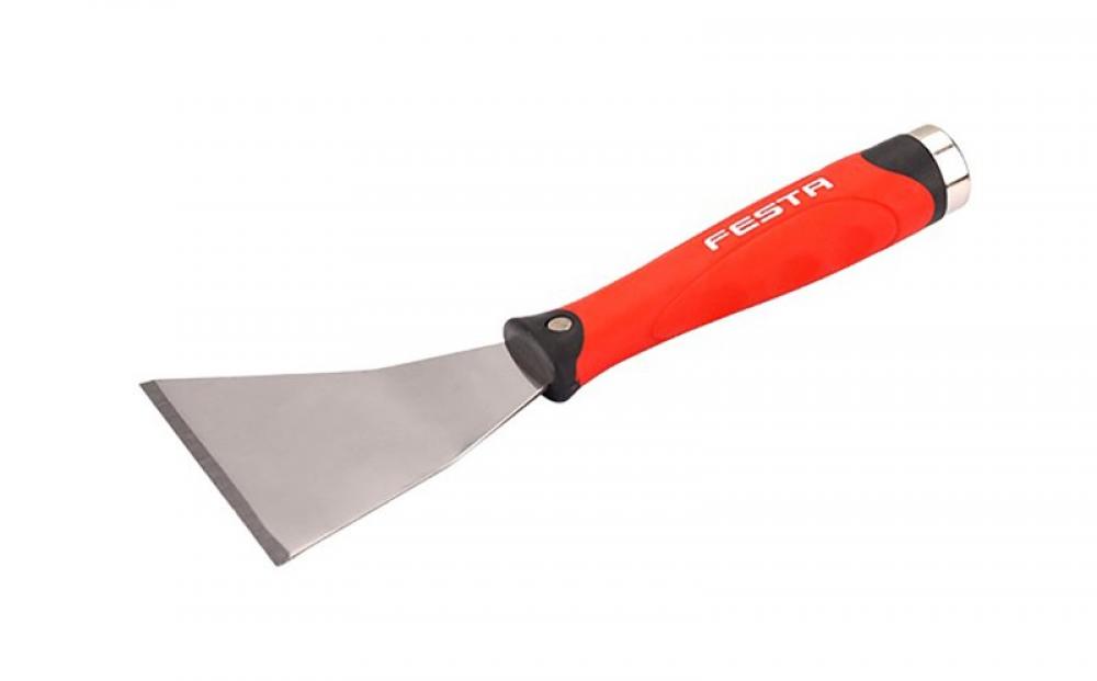 Škrabacia špachtľa 100 mm vyrobená z 2 mm hrubého nerezového plechu, s plastovou rukoväťou. Vnútri rukoväte je kónický otvor so závitom. Vhodná násada 52010. Celková dĺžka 250 mm.