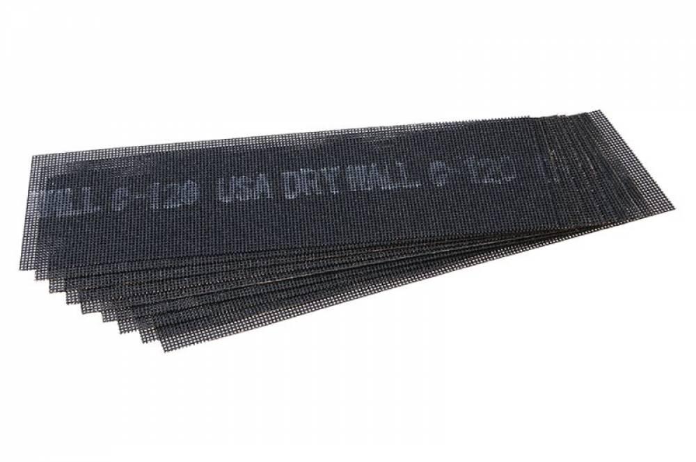 Brúsna mriežka 93 x 290 mm, zrnitosť 120, 10ks / sada. , nosná tkanina zo sklených vlákien, živicou prilepené brúsne zrná karbidu kremíka nanesené antistaticky, vhodné pre brúsenie sadrokartónových...