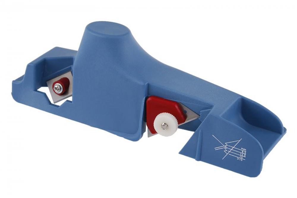 Plastový hoblík na sadrokartón s oceľovými čepieľkami, materiál: kvalitný tvrdý plast, presná hrana, kvalitné uchytenie nožov, použitie: pre orez hrán sadrokartónu - vytvorenie hrany (plochy) pre priľnutie škárovacieho brúsiteľného tmelu, balenie: papierový box s eurootvorom.
