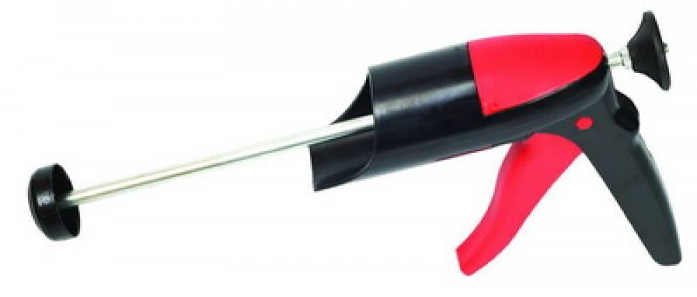 Vytlačovacia plastová pištoľ, špeciálna konštrukcia tejto pištole - "bezrámová", malé rozmery, jednoduchá výmena aj uchytenie kartuše - pružný samozvierateľný kovový prstenec, kvalitný ABS plast a kov, kartuša sa len vsunie do tela pištole a samosvorne drží, na vybratie stiahneme tlačný piest k sebe a tým prstenec uvoľníme čím dôjde aj k uvoľneniu kartuše, ktorá sama vypadne, použitie: pre vytláčaniu tmelov a lepidiel v kartušiach 310 ml.