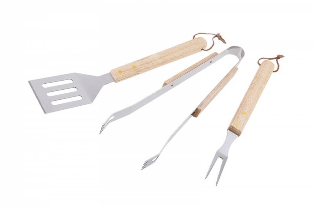 Sada náradia pre grilovanie, nerez a drevo, použitie: lopatka na obracanie mäsa, kliešte na otáčanie a vidlice, pre grilovanie a varenie, v domácnosti, na záhrade, pri kempovaní ..., jednoduchá a bezpečná manipulácia s pokrmami pri tepelnej úprave na grile, panvici ..., balenie papierový box.