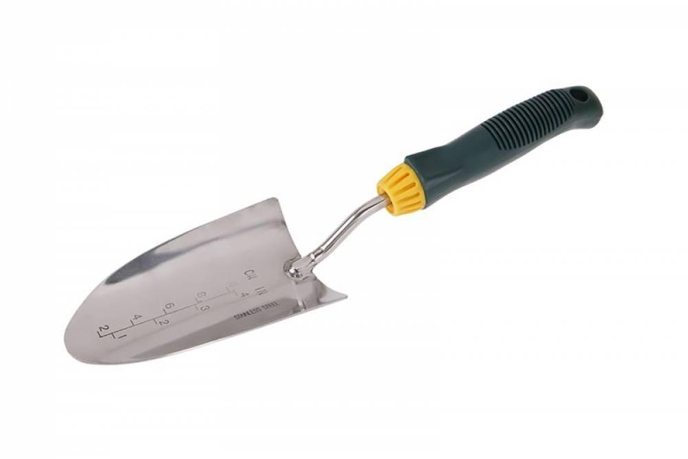 Záhradná lopatka ROSA - nerez, široká, praktická mierka na jednoduché docielenie správnej hĺbky pri sadení, kvalitný materiál i spracovanie, ergonomická plastová rukoväť, dĺžka 35 cm, použitie: pre všetky práce na záhradke, pre pracu s izbovými rastlinami ..., balenie: blister s eurootvorom.