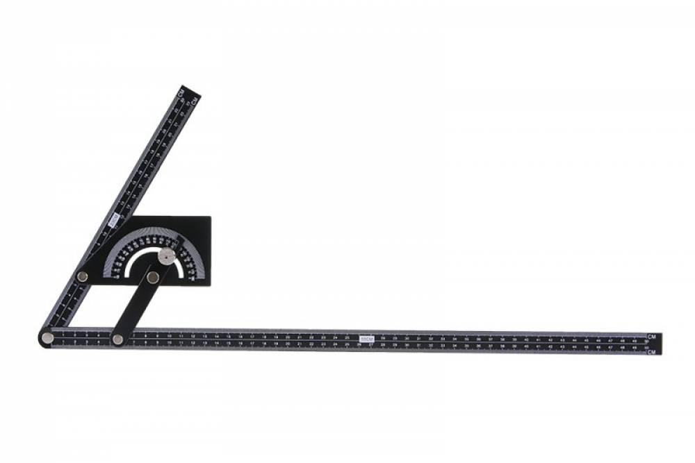 Uhlomer 0 - 180°, dĺžka ramien 230 a 500mm, aretácia pomocou skrutky, pre orientačné meranie a prenos uhlov.