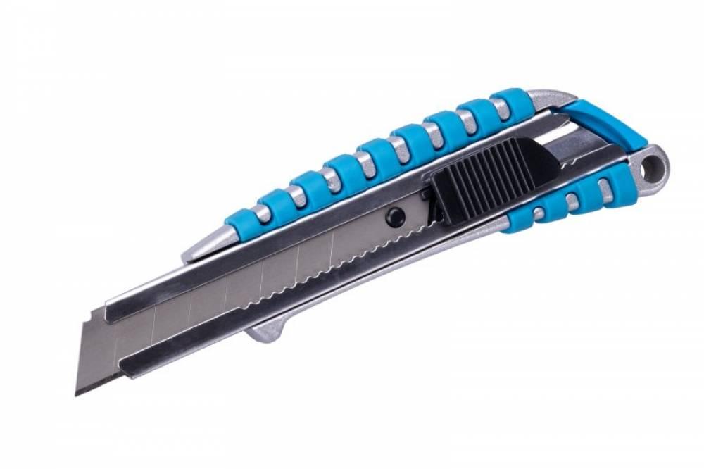 Odlamovací nôž s kovovým telom a vystuženým vedením čepele