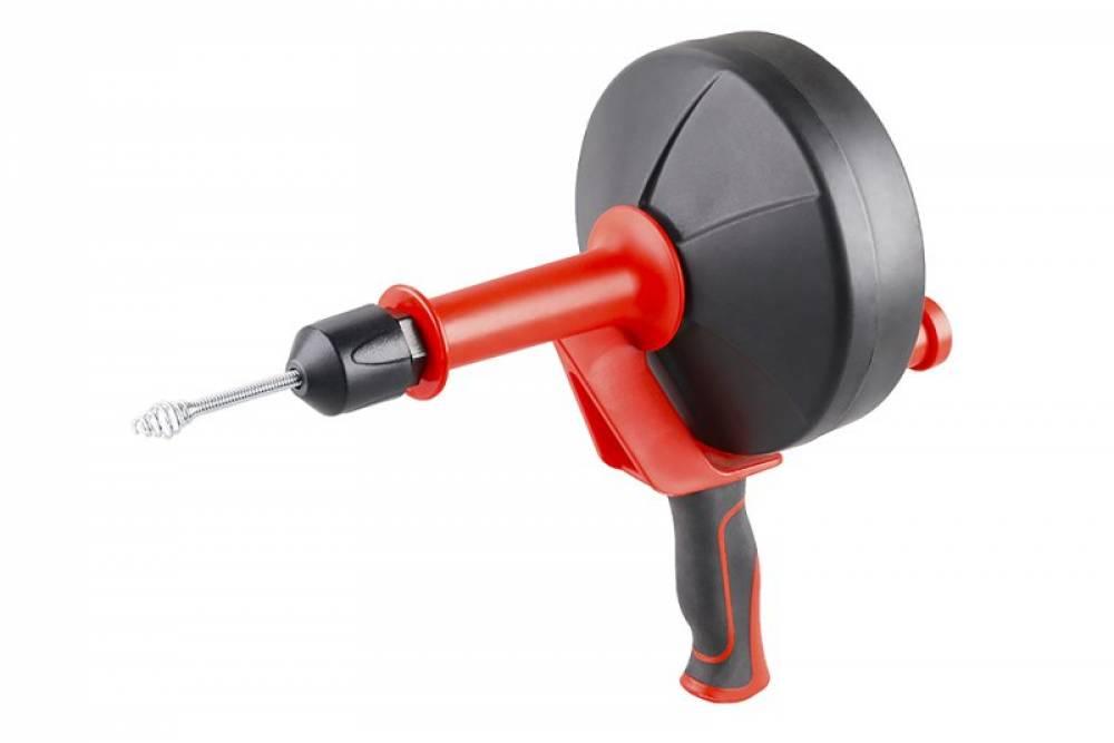 • pre prácu - ručne vytiahnuť špirálu do potrebnej dĺžky (max. 6 m), otáčanie kľukou alebo vŕtačkou umožňuje lepšiu priestupnosť čističe v potrubí, po praci očistiť a späť mechanicky zasunúť späť do plastového puzdra