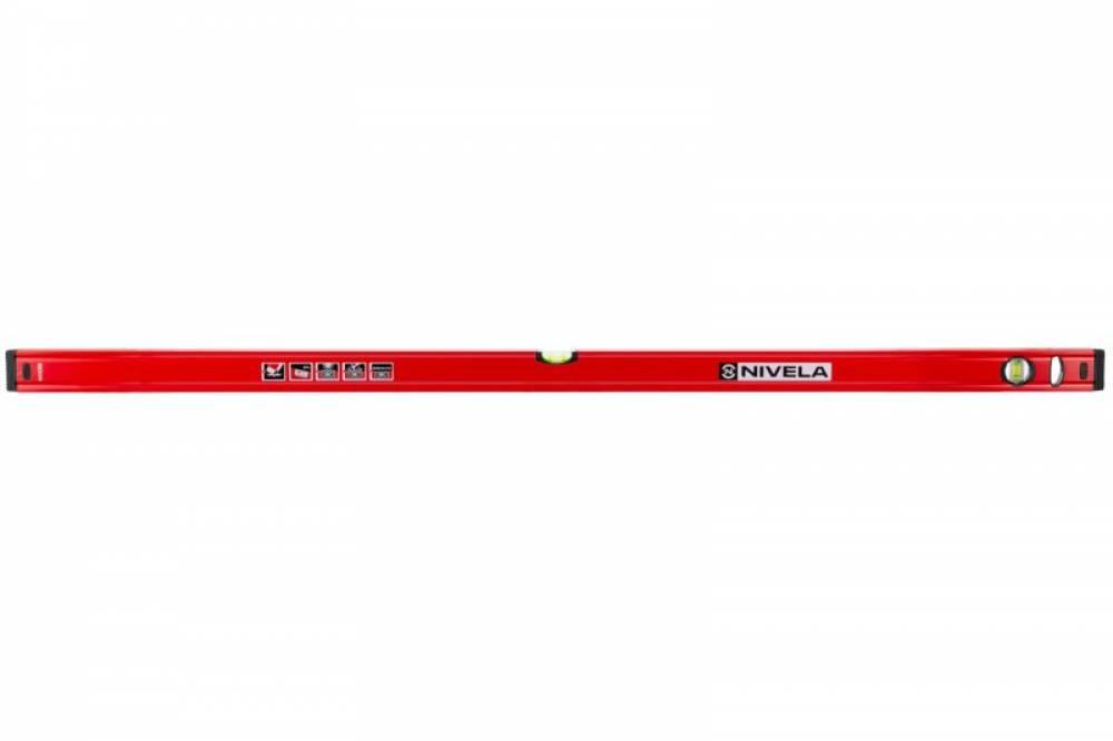 Vodováha s dvomi libelami s presnosťou 1mm / 1m, hliníkový profil - hrúbka steny 1,4mm, gumové koncovky, optická libela, fluorescentná kvapalina.