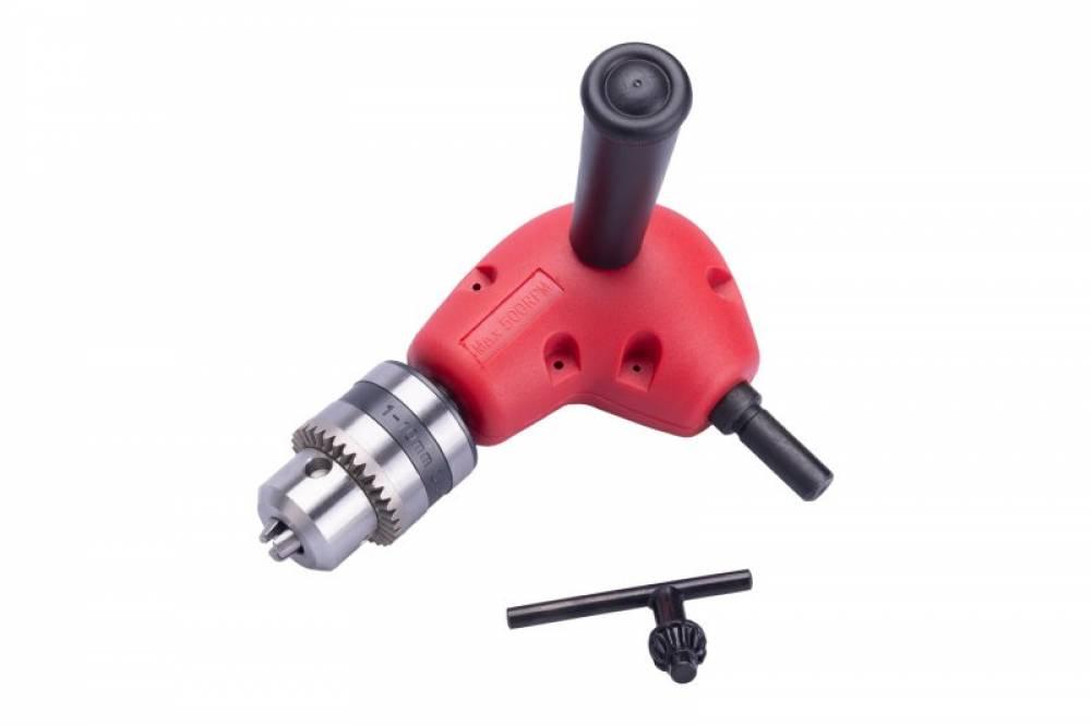 Nástavec na vŕtačku pre vŕtanie pod uhlom 90°, Ø stopky 10mm, max.upínací Ø skľučovadla 10mm. Telo ABS plast, prevodové súkolie kov. Prevodový pomer 1:1.