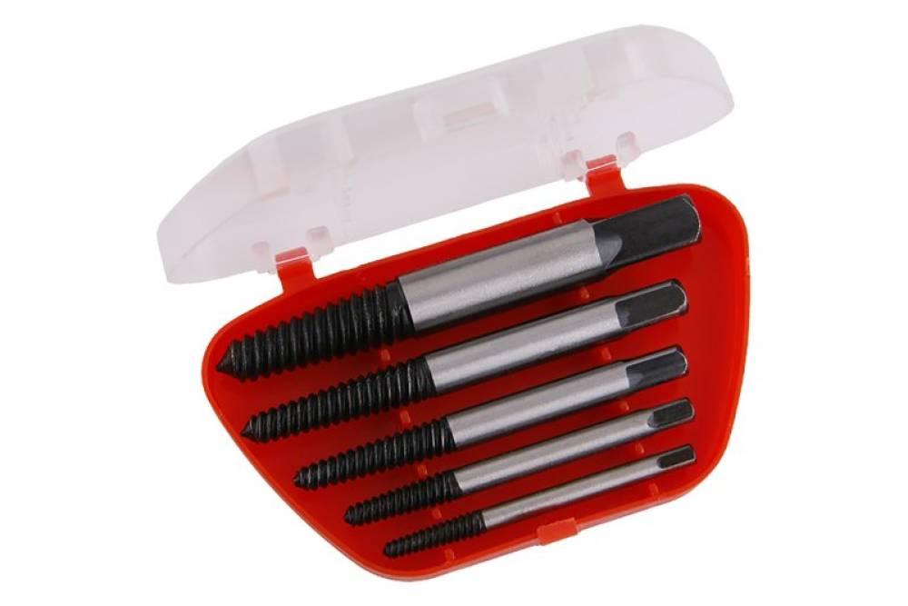 5-dielna sada vyťahovákov skrutiek pre hobby použitie, použitia: na vyťahovanie zlomených a zalomených skrutiek, závitových tyčí ...., nutné predvŕtanie, vďaka opačnej skrutkovici postupným zavŕtaním do otvoru dôjde k vyskrutkovaniu popr vytočeniu zalomeného dielu, rozmery: Ø 4, 4.5, 6, 7.5, 11 mm, praktický plastový box pre uloženie.