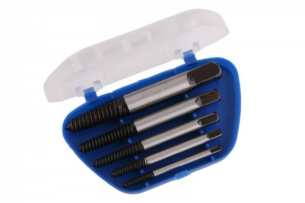 5-dielna sada vyťahovákov skrutiek FESTA, použitia: na vyťahovanie zlomených a zalomených skrutiek, závitových tyčí ...., nutné predvŕtanie, vďaka opačnej skrutkovici postupným zavŕtaním do otvoru dôjde k vyskrutkovaniu - popr. vytočeniu zalomeného dielu, pre profesionálne použitie, rozmery: Ø 4, 4.5, 6, 7.5, 11 mm, praktický plastový box pre uloženie.