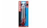 Profesionálny odlamovací nôž FESTA 18mm, moderný a funkčný dizajn, bezpečnosť a ergonómia, celokovové telo s pogumovanou úchopovou časťou, zásobník náhradných čepelí, automatická výmena ostria (pri naplnenom zásobníku), automatická aretácia s prítlačnou poistkou britu, balené na blistri.