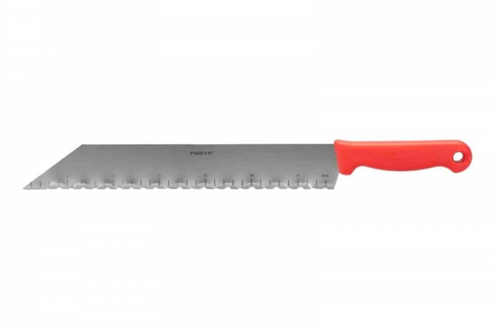 Nôž na zatepľovacie materiály - polystrén, minerálna vata, možné použiť aj na molitan, gumu atď., špeciálne ostrie, široká čepeľ, ergonomická rukoväť, dĺžka čepele 350mm, plastový záves.