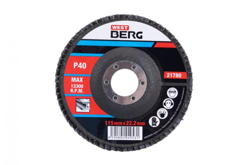 Lamelový kotúč, zrnitosť: 40; druh zrna: oxid hlinitý; spojivo: umelá živica; podkladový materiál: pružná tkanina - 100% bavlna (240-260g / m2); prevedenie: vyhnutý; otvor: Ø 22,2mm, max. pracovná rýchlosť: 80m / s, max. prípustné otáčky: 13300 1 / min, použitie: brúsenie, obrusovanie, odstraňovanie hrdze, odstraňovanie náterov, ...., rozmery: uvedený v názve výrobku.