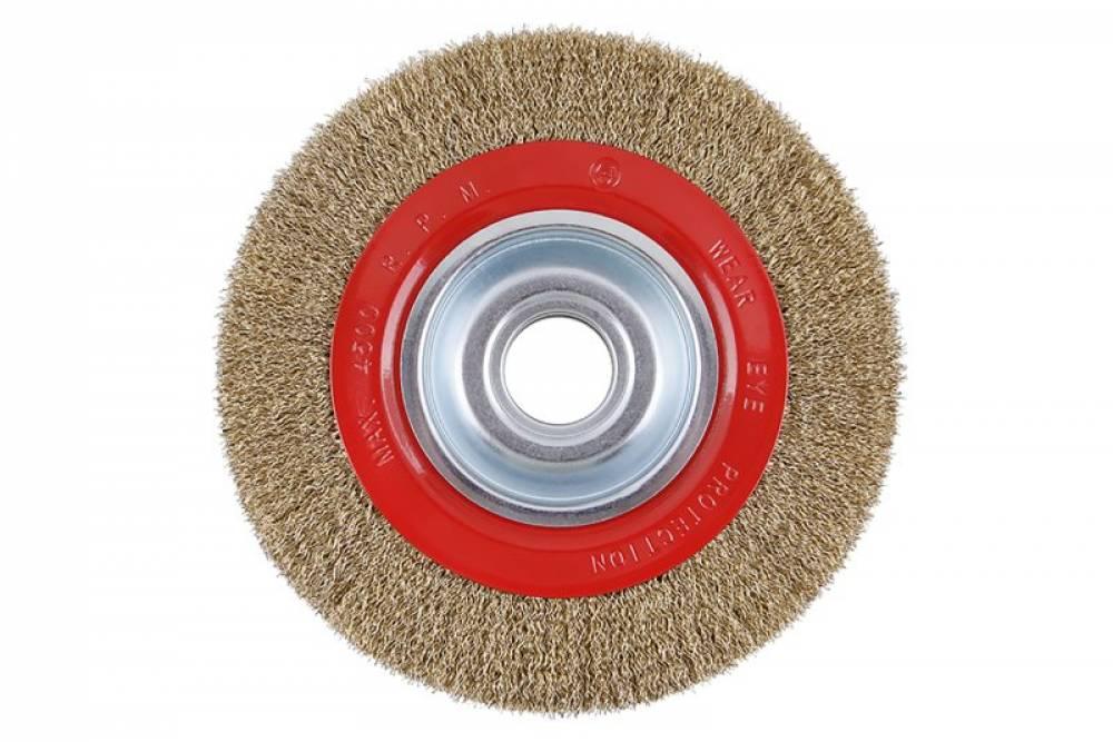 Rotačná kefa - okružná, prevedenie: vlnitý drôt, kefy FESTA zaručujú kvalitné použité materiály i spracovanie, drôt ø 0,3mm - pomosadzený, priemer 200mm, uchytenie otvor ø 32mm (vrátane redukčných krúžkov ø 12,7 mm - 1/2 ", ø 15,8 mm - 5/8 ", ø 19 mm - 3/4 ", ø 22,2 mm a ø25,4mm - 1 "), počet drôtov 8000, dĺžka drôtov 34 mm, maximálne otáčky za min. 4500, vhodný pre zámočnícke a kovoobrábacie práce, odstraňovanie hrdze, farieb, leštenie. ..., balenie: plastový box.