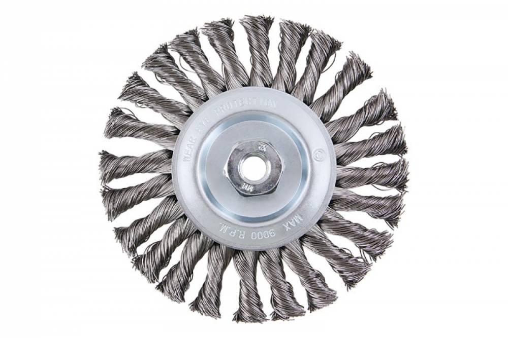 Rotačná kefa - radiálna, prevedenie: COPY - patentovaný drôt 0,5 mm - copy, sa ani pri extrémnom zaťažení nerozpletajú, priemer Ø 150mm, uchytenie: závit M14x2 mm, pozinkované telo kefy, počet drôtov: 1800, dĺžka drôtu: 34 mm, max. prípustné otáčky: 9000 1 / min, použitie: odstránenie farby, hrdze, otrepov, zvyškov po zvarovní, trosky, zdrsňovanie, čistenie kovoých súčastí, balenie: papierový box s eurootvorom.