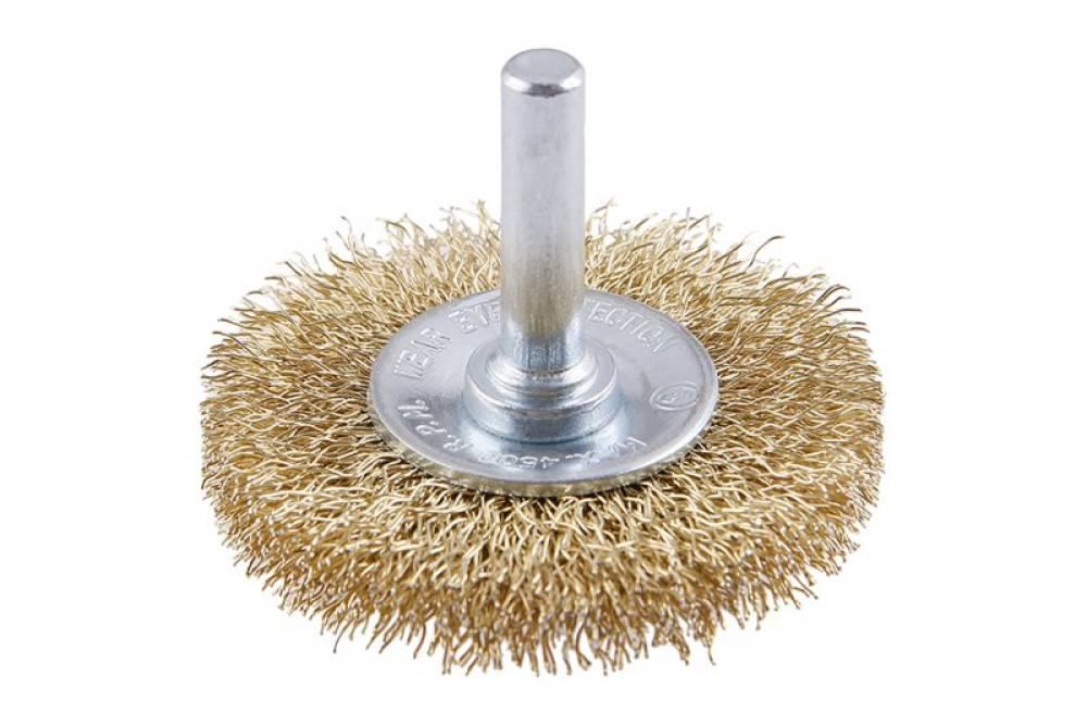 Rotačná kefa - okružná, prevedenie: vlnitý drôt 0,25 mm - pomosadzený, priemer Ø 50 mm, stopka 6 x 27 mm, pozinkované telo kefy, počet drôtov: 936, dĺžka drôtu: 12,5 mm, max. prípustné otáčky: 4500 1 / min, použitie: pre leštenie, zdrsňovanie, ostranenie hrdze a otrepov, balenie: blister s eurootvorom.