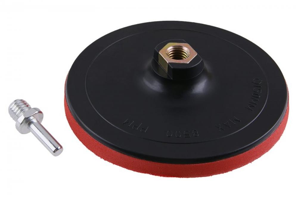 Unášač brúsneho papiera, pružná nosná doska, mäkká elastická pena "EVA", veľmi dobré prispôsobenie brúsenému povrchu, závit: M14, stopka - redukcia M 14 / 8mm, použitie: pre uchytenie brúsnych výsekov...