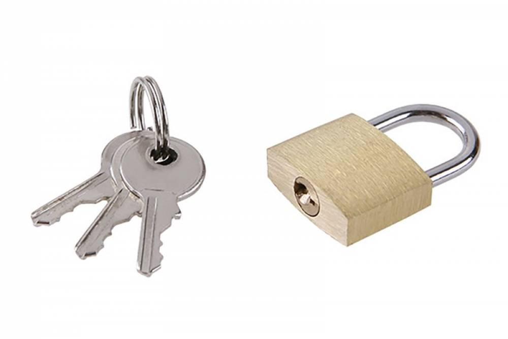 65mm mosadzné telo zámku; Mosadzná vložka; kľúče: 3; váha:21g; Oblúk z tvrdenej ocele pre lepšiu odolnosť proti prerezaniu.