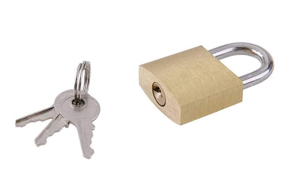 25mm zosilnené mosadzné telo zámku; Mosadzná vložka; kľúče: 3; váha:32g; Zosilnený oblúk z tvrdenej ocele pre lepšiu odolnosť proti prerezaniu.