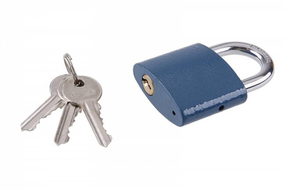 Oceľové telo zámku, Mosadzná vložka, váha: 290g, 3 kľúče, Zosilnený oblúk z tvrdenej ocele pre lepšiu odolnosť proti prerezaniu.