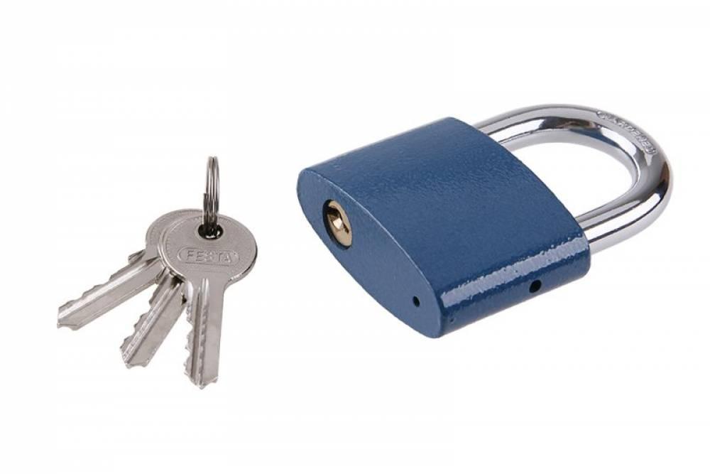 Oceľové telo zámku, Mosadzná vložka, váha: 430g, 3 kľúče, Zosilnený oblúk z tvrdenej ocele pre lepšiu odolnosť proti prerezaniu.