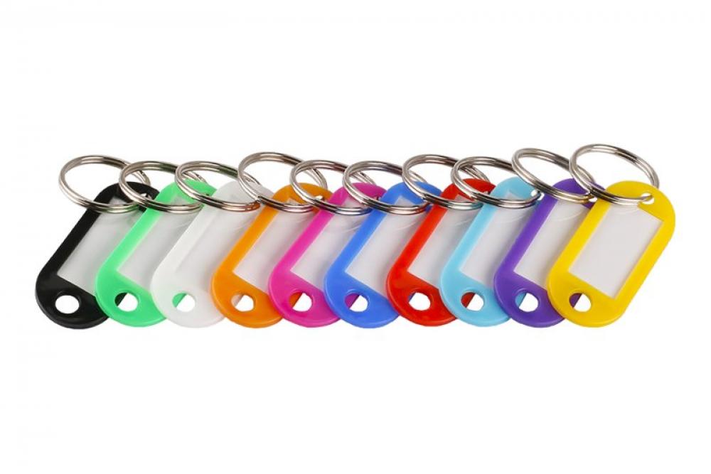 Plastové visačky ku kľúčom so zosilneným krúžkom a možnosťou popisu, v balení rôzne farby!
