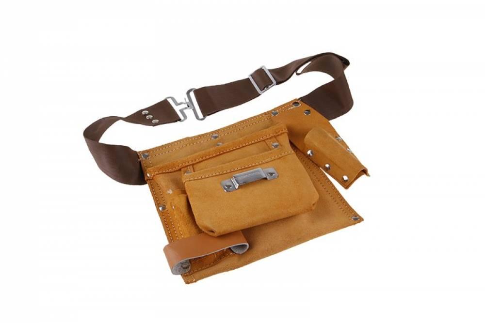 Pás na náradie, PROFI - kvalitná silná koža i spracovanie - švy, 6 vreciek, koža / nylon, použitie: na uloženie náradia a pomôcok, uľahčuje manipuláciu a prácu - jednoduché odkladanie náradia aj opätovné uchopenie, uloženie materiálu - klincov, skrutiek ..., komfortný široký nastaviteľný pás.