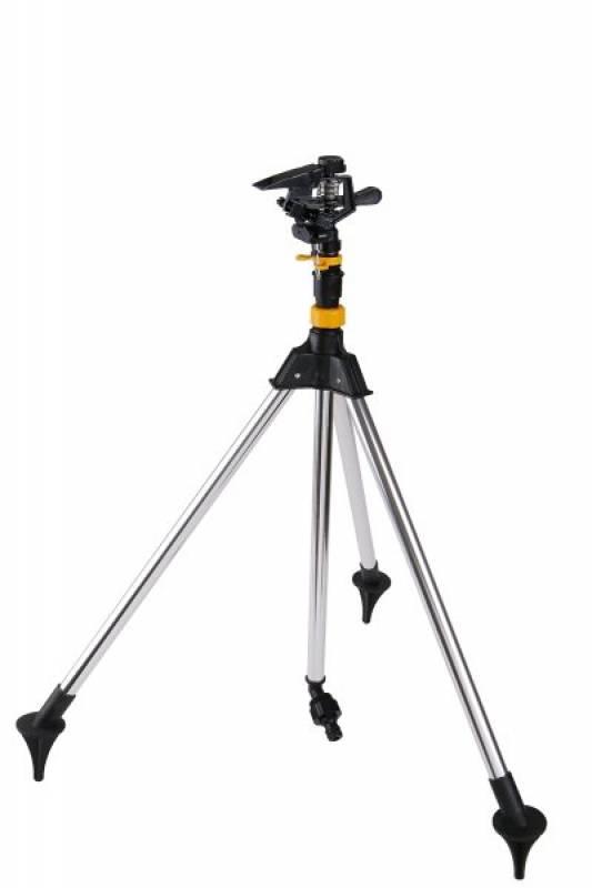 Impulzní zavlažovač na trojnožce s přípojením hadicovou rychlospojkou, min.70 kPa a max.550 kPa.
