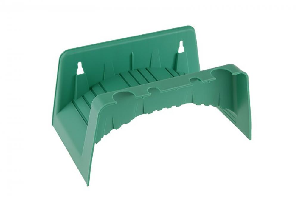 Držiak záhradnej hadice, možnosť upevnenie na stenu, odkladacie priestory na koncovky, striekacie pištole a iné.