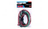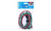 Elastické gumové popruhy, opletené polyesterom a obojstranne zakončené hákmi z oceľových poplastovaných drôtov k uchytávaniu batožiny.