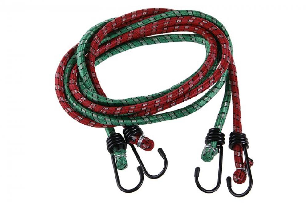 Elastické gumové popruhy, opletené polyesterom a obojstranne zakončené hákmi z oceľových poplastovaných drôtov k uchytávaniu batožiny.